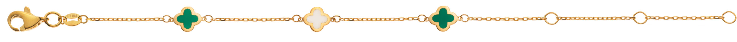 Armband Flowers Anker Gelbgold 375, 16cm, 3 Blumen emailliert 2xgrün+1xweiss