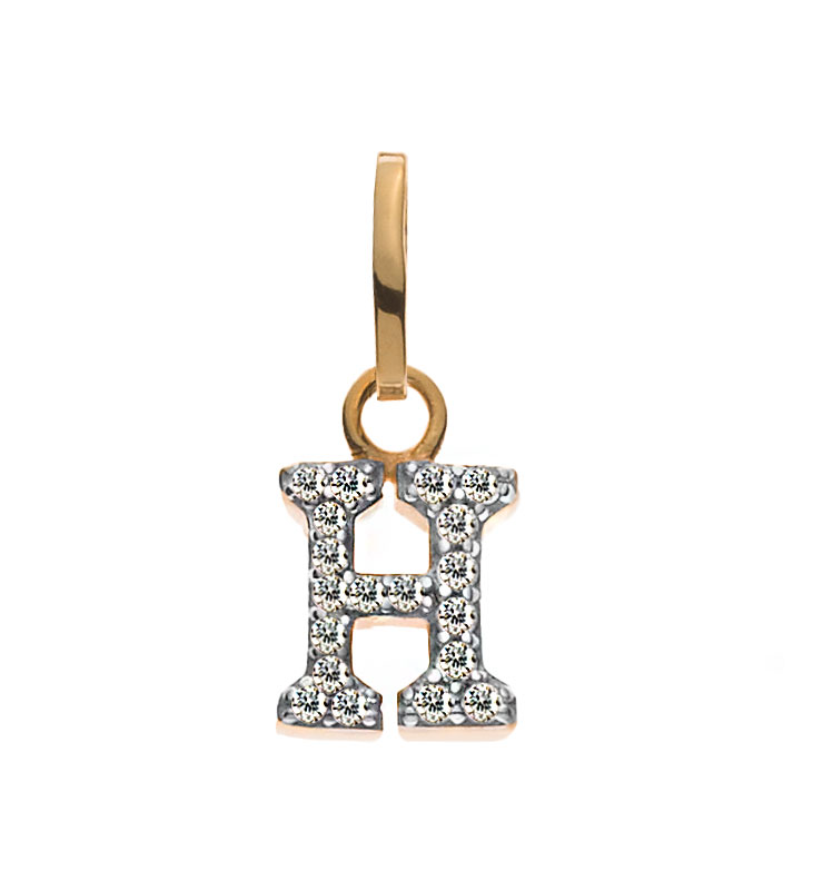 Buchstaben Gelbgold 375 teilrhodiniert mit Zirkonias H