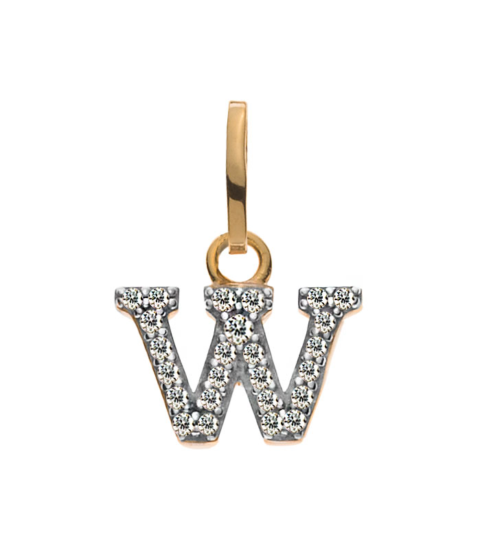 Buchstaben Gelbgold 375 teilrhodiniert mit Zirkonias W