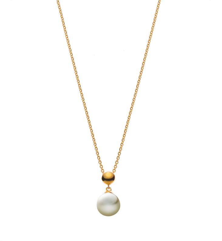 Collier Gelbgold 375, mit SWZ-Perlanhänger 7.5-8mm, 15x5mm