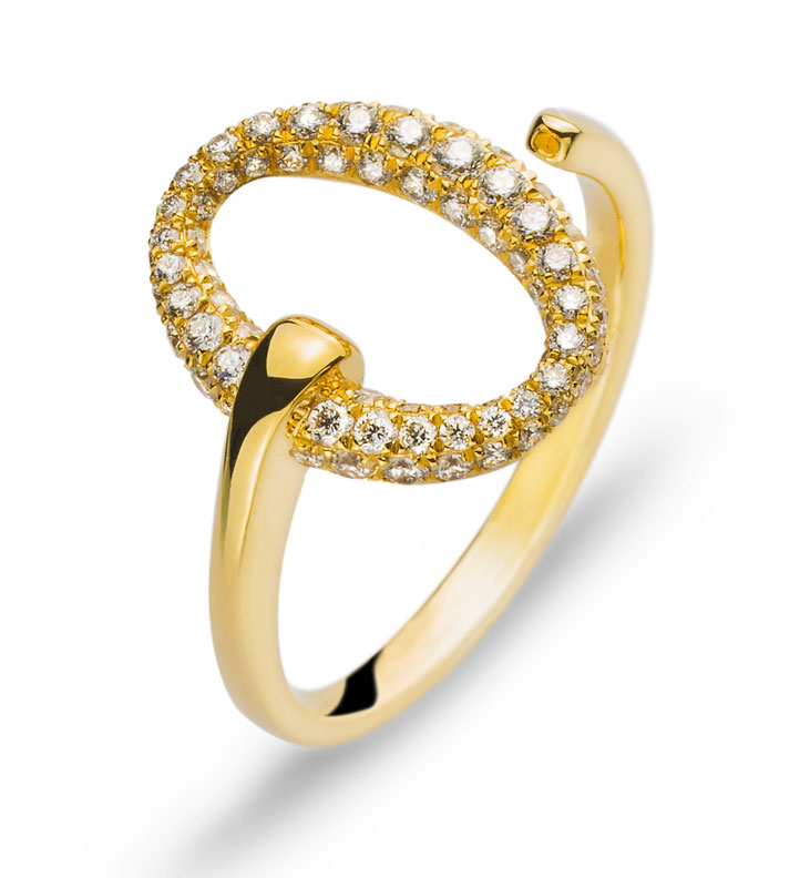 Ring mit offener Schiene und rundem Ringkopf Gelbgold 750