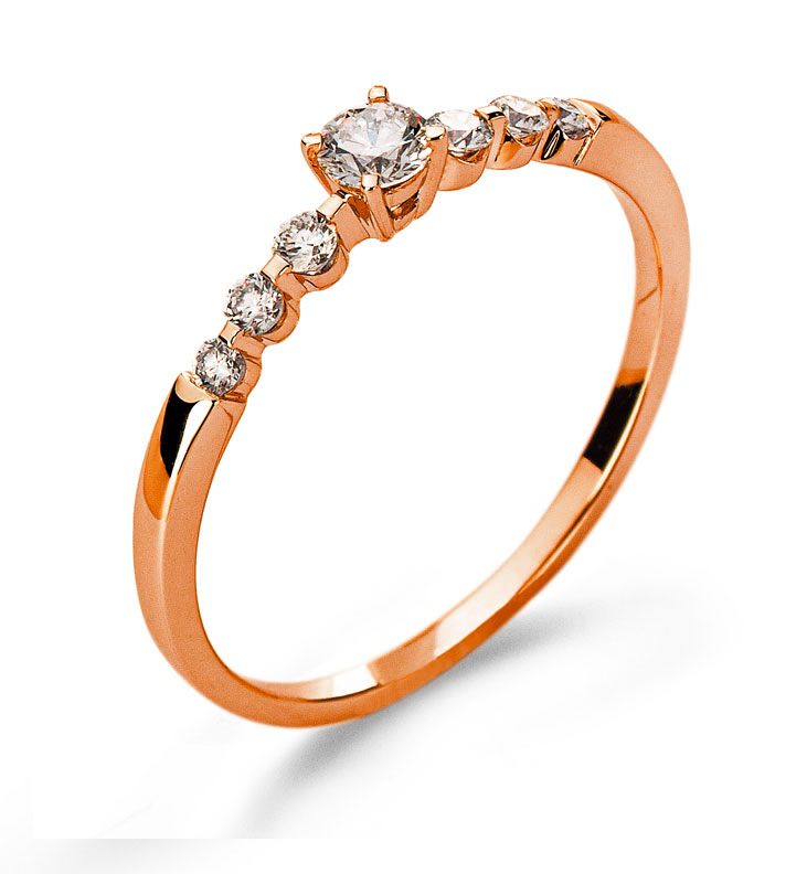 Ring Rotgold 750 mit 6 Brillanten H SI Tot. 0.13ct. & 1 Brillant H SI 0.14ct.