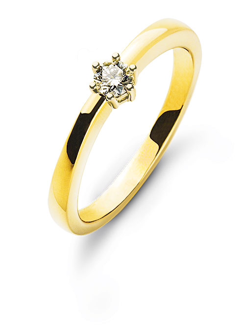 Solitär Ring 6-Griff Gelbgold 750 H SI 0.10ct.
