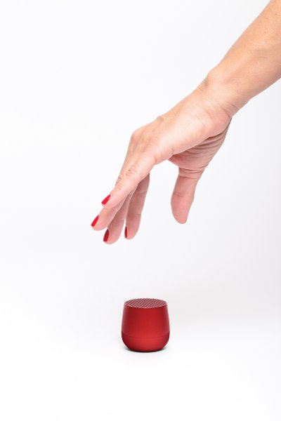 Mino – mini Speaker mit integriertem “Hands free” Mikro 3 W Bluetooth 4.1 Akkukapazität: 2 h Ladezeit: 30 Minuten USB inkl. Material: Aluminium / ABS Durchmesser: 3,7 cm / Höhe: 3,2 cm Gewicht: 70 g